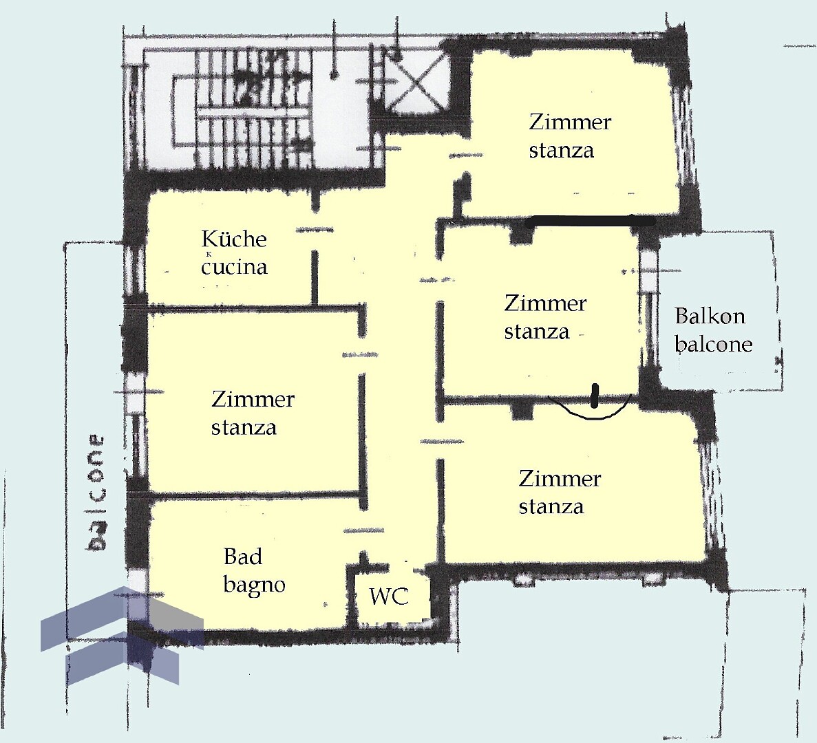 Wir bieten exklusiv eine teilsanierte Vierzimmerwohnung im vorletzten Stock mit Garage und Keller in zentraler Lage. Die Immobilie steht umgehend zur Verfügung.