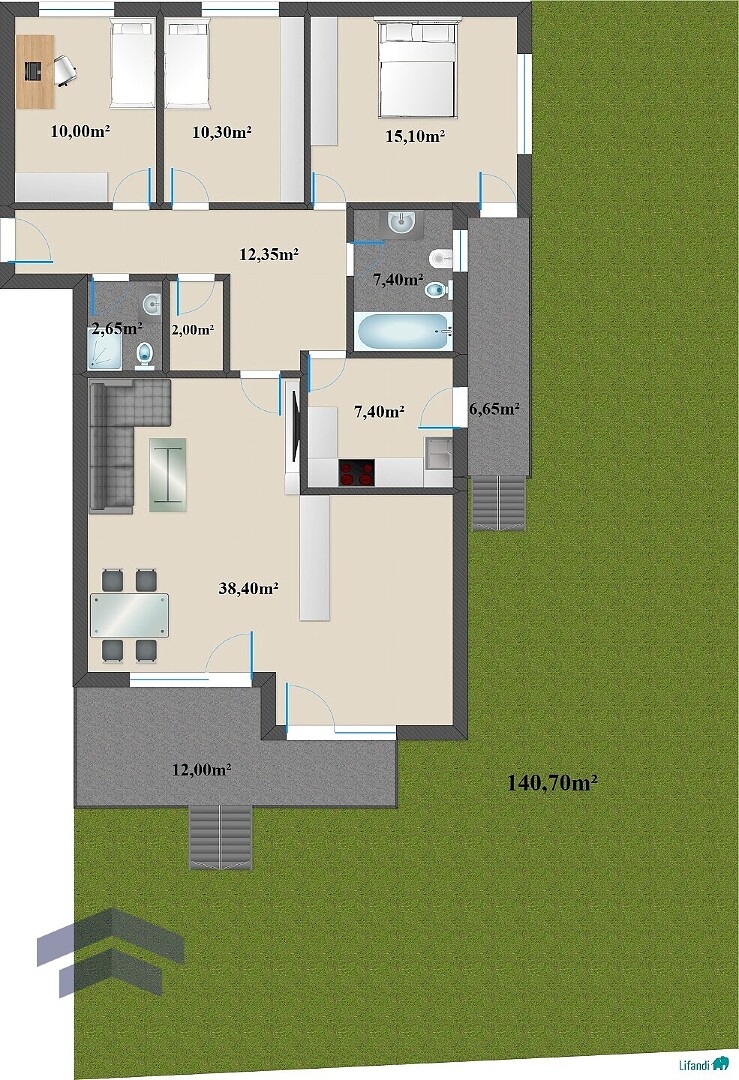 Attraente appartamento al piano terra in via Roma con tre camere da letto e due bagni. L'appartamento ben distribuito offre un ampio soggiorno e zona pranzo con accesso diretto alla soleggiata terrazza e al grande giardino, ideale per momenti di relax all'aperto. Naturalmente è inclusa anche una cantina e c'è la possibilità di acquistare un posto auto nel piano interrato al prezzo di Euro 25.000.